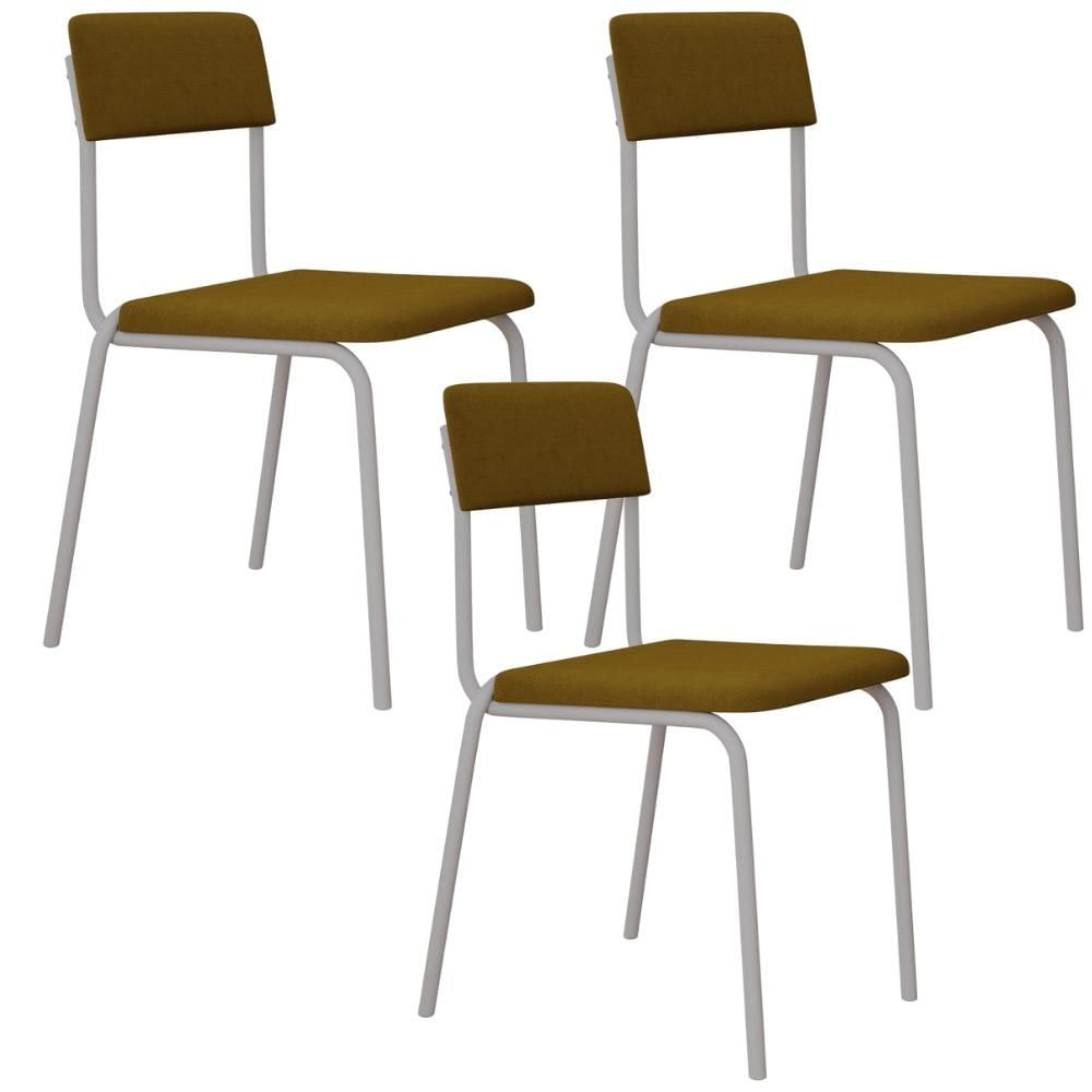 Kit 03 Cadeiras Estofada Para Sala de Jantar Sense Branco C01 Linho Mostarda - Lyam Decor