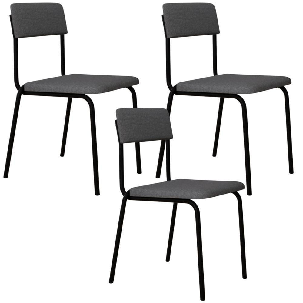 Kit 03 Cadeiras Estofada Para Sala De Jantar Sense Preto C01 Linho Cinza Claro - Lyam Decor