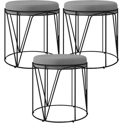 Kit 03 Puffs Decorativo Aramado Preto Zaya L02 Corano Cinza - Lyam Decor