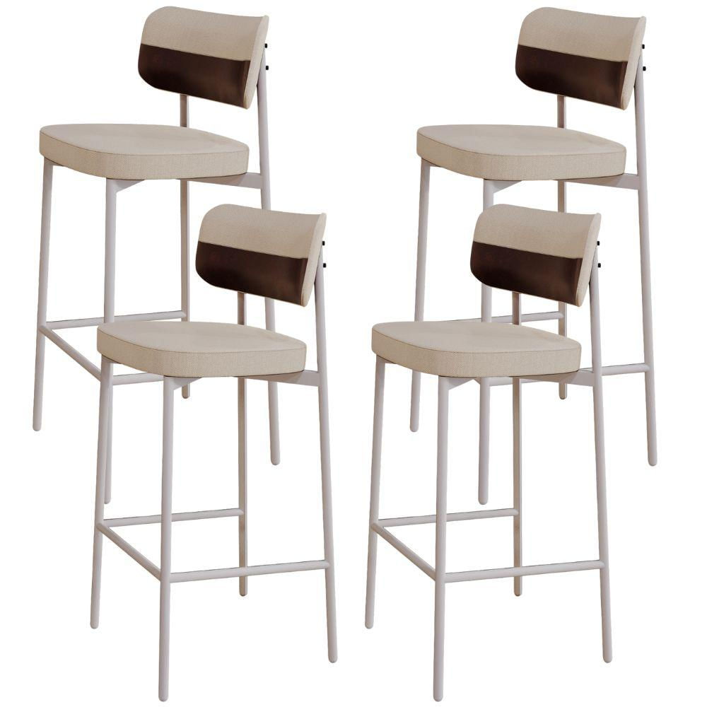 Kit 04 Banquetas Alta Bar Cozinha Sala De Jantar Aço Branco Kaira C01 Linho Areia Courino Café - Lyam Decor