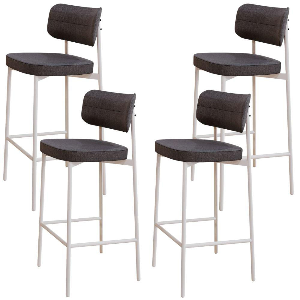 Kit 04 Banquetas Alta Bar Cozinha Sala De Jantar Aço Branco Kaira C01 Linho Preto - Lyam Decor