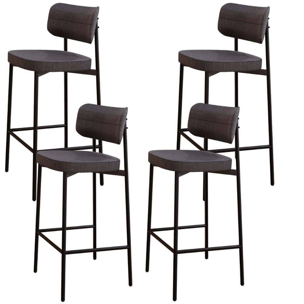 Kit 04 Banquetas Alta Bar Cozinha Sala De Jantar Aço Preto Kaira C01 Linho Preto - Lyam Decor