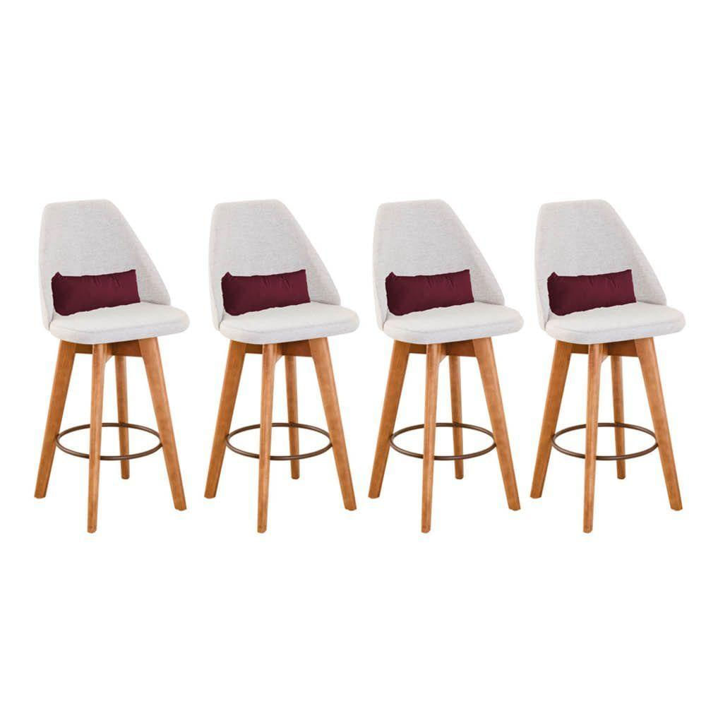 Kit 04 Banquetas Alta Maya Giratória Com Encosto Gourmet Linho Bege e Almofada Suede Bordô - Aurora Line