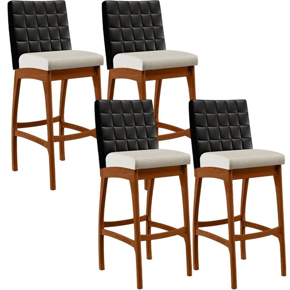 Entregando muita excelência, o Kit 04 Banquetas Altas Sala De Jantar Fixa Mila B04 Couríssimo Preto Linho Champagne - Lyam Decor é o complemento que faltava para deixar sua casa ainda mais extraordinária. Seu encosto com costura em padrão quadriculado e assento estofados, centralizam em si uma graciosidade estonteante, sem perder todo o conforto. A estrutura em madeira, na cor nozes, também é digna de notoriedade, por imprimir bastante personalidade a sua decoração. Vale ressaltar ainda, o apoio para os pés que garante maior segurança à banqueta.