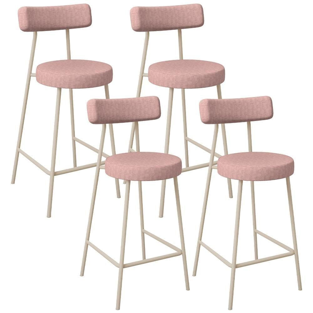 Kit 04 Banquetas Baixa Bar Cozinha Sala De Jantar Aço Milão Arena L02 Linho Rosa - Lyam Decor