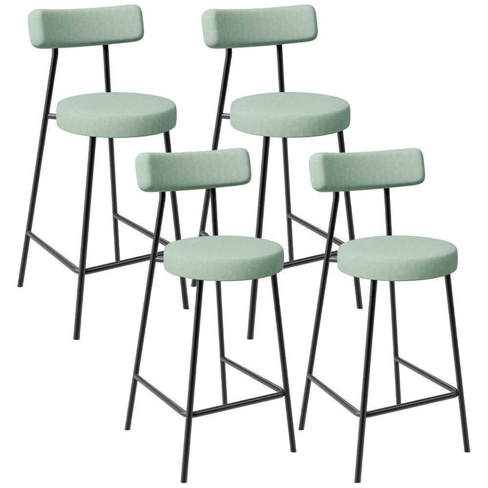 Kit 04 Banquetas Baixa Bar Cozinha Sala De Jantar Aço Milão L02 Linho Verde Menta - Lyam Decor