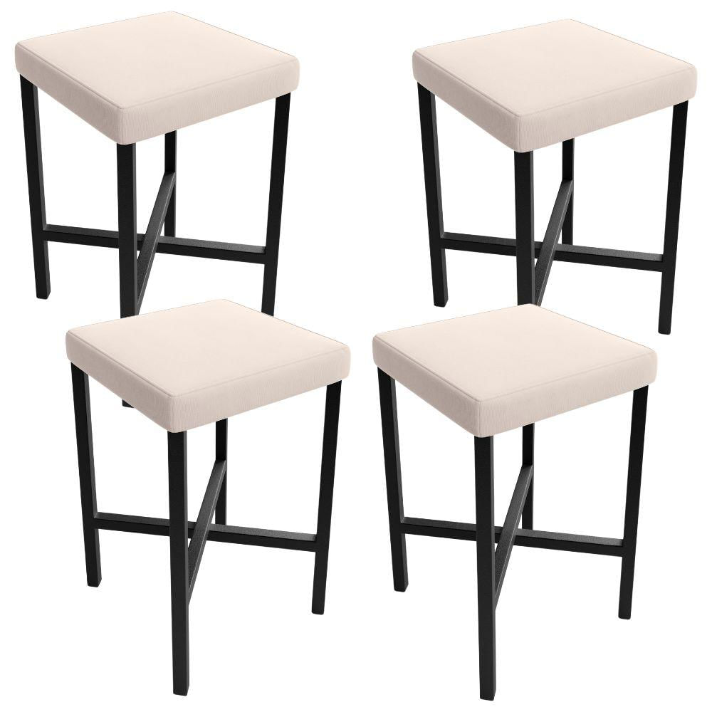 Kit 04 Banquetas Baixa Bar Cozinha Sala De Jantar Preto Stella L02 Suede Bege - Lyam Decor