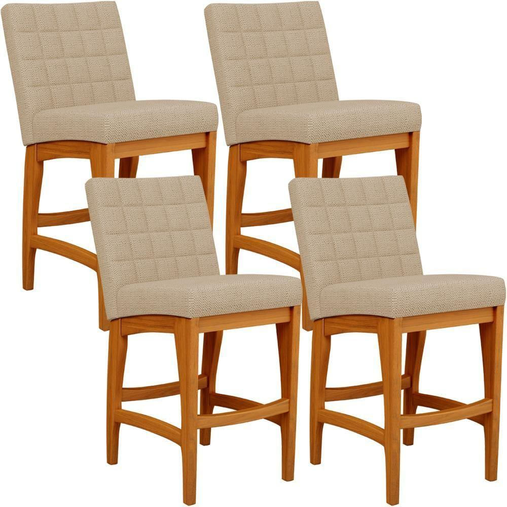 Kit 04 Banquetas Baixa Cozinha Bancada Bar Sala Jantar Fixa Mila L02 Linho Bege Escuro - Lyam Decor