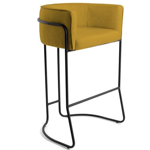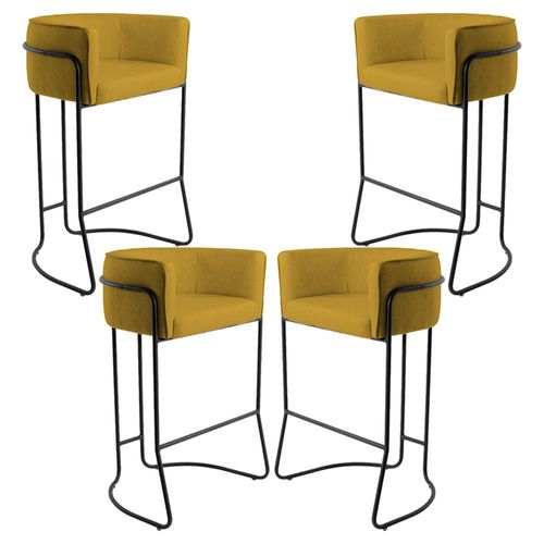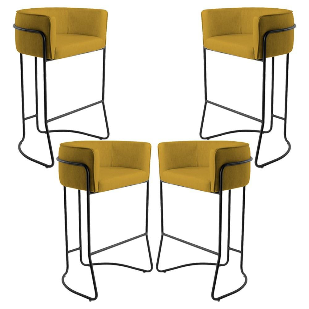 Kit 04 Banquetas Decorativas Fixa Base de Aço Preto Betina D02 Veludo Mostarda C-279 - Lyam Decor