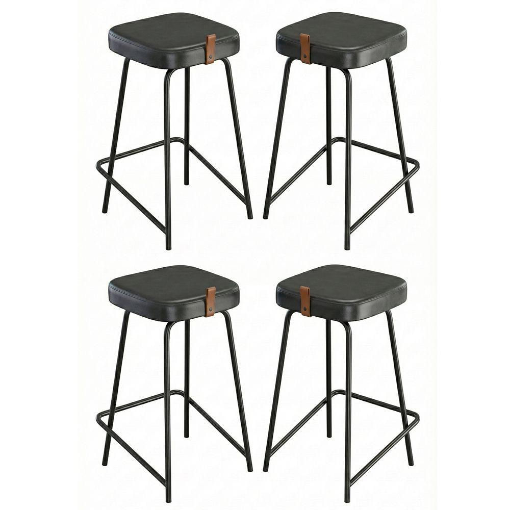 Kit 04 Banquetas Médias Para Cozinha Vik Estofada Couríssimo Preto - Desk Design