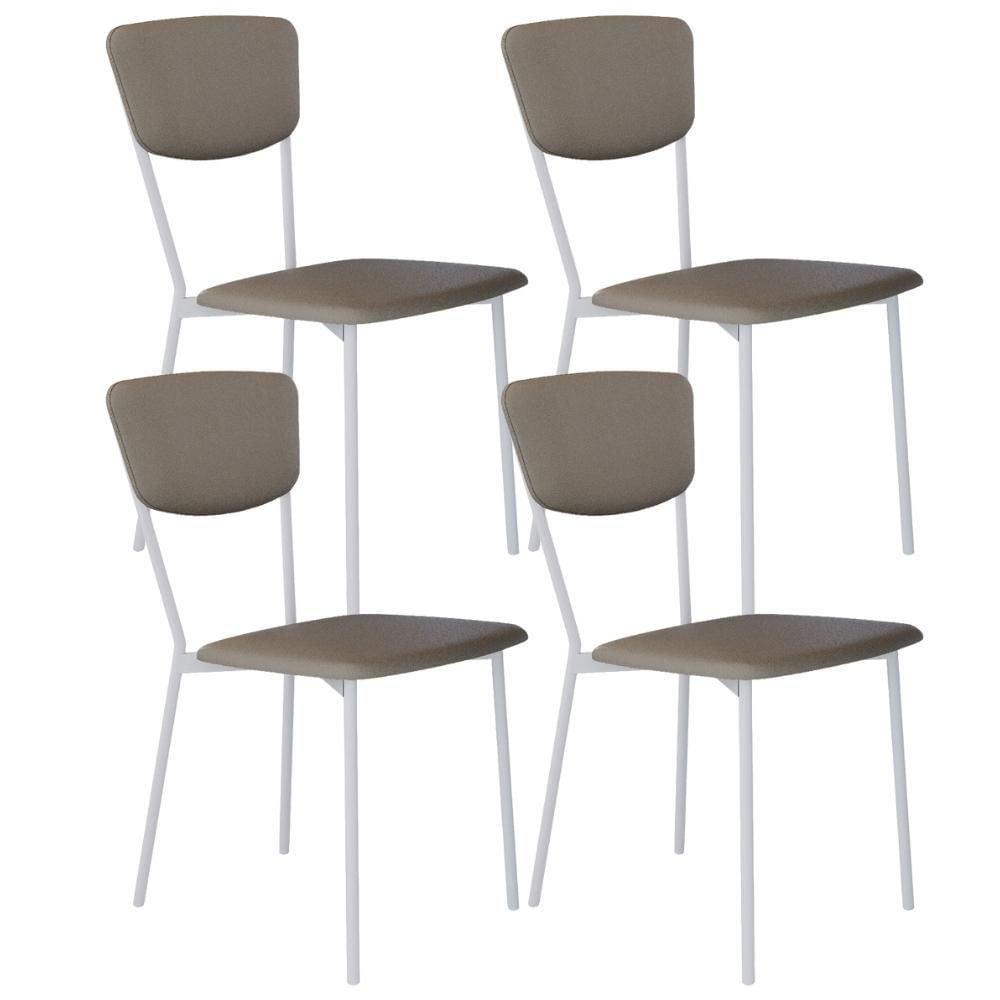 Kit 04 Cadeira Para Sala De Jantar Village Branco C01 Courino Cinza - Lyam Decor