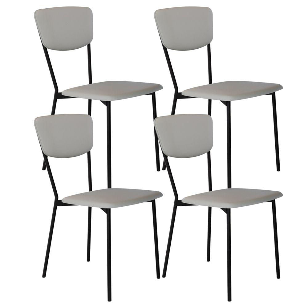 Kit 04 Cadeira Para Sala de Jantar Village Preto C01 Courino Off White - Lyam Decor