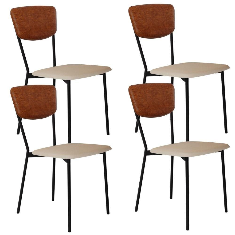 Kit 04 Cadeira Para Sala de Jantar Village Preto C01 Linho Areia Courino Caramelo - Lyam Decor