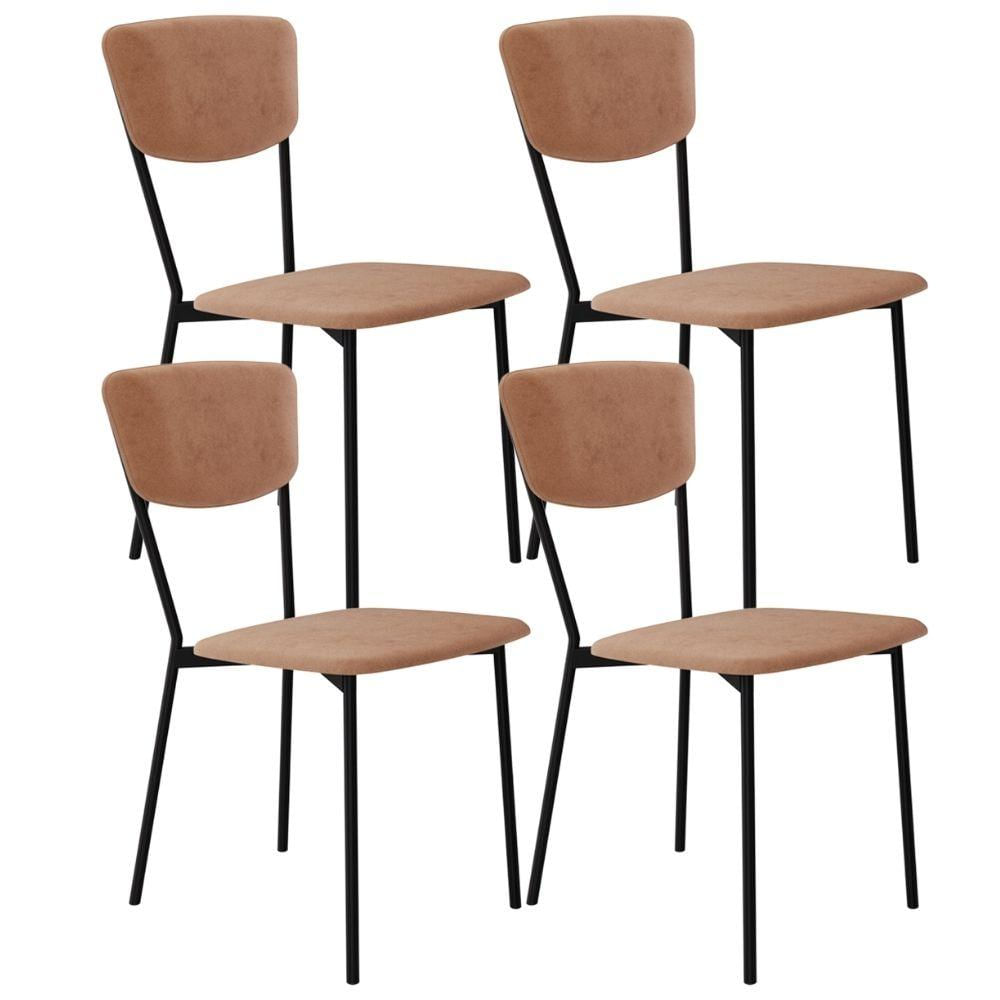 Kit 04 Cadeira Para Sala de Jantar Village Preto C01 Veludo Bege - Lyam Decor
