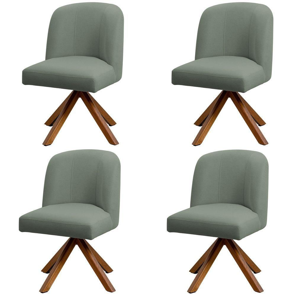 Kit 04 Cadeiras De Jantar Cléo Base Giromad Linho Verde - Nexta Casa