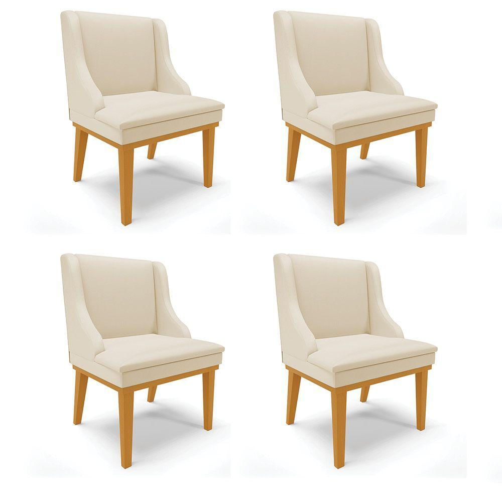 Kit 04 Cadeiras De Jantar Corino Bege Base Madeira Castanho