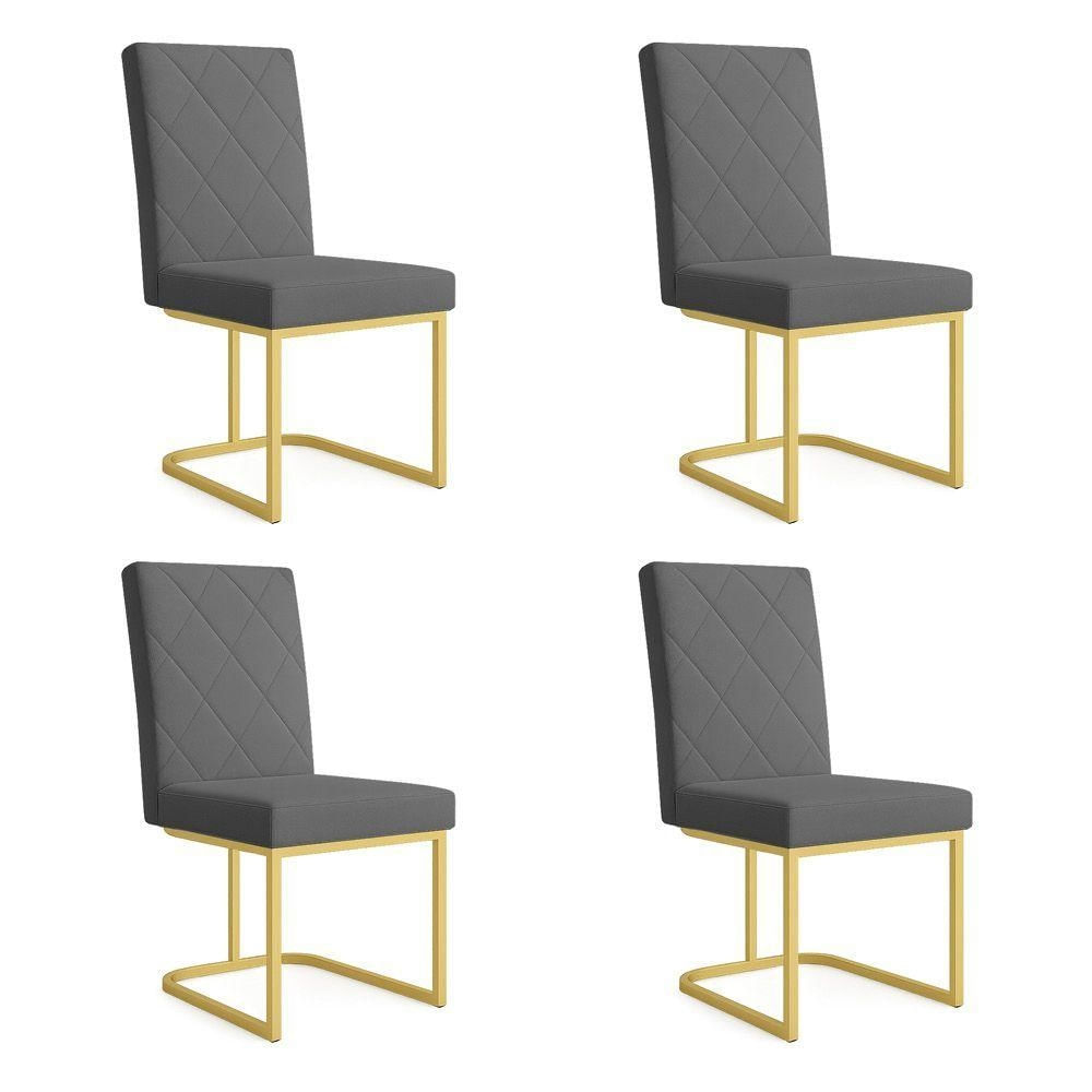 Kit 04 Cadeiras De Jantar Estofada Siena Linho Base De Ferro Dourada - Pallazio Cor Grafite