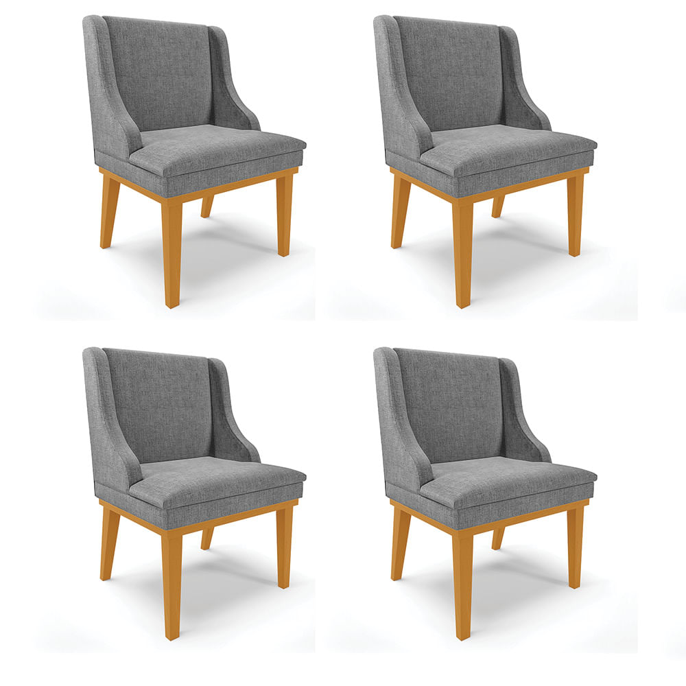 Kit 04 Cadeiras de Jantar Liz Linho Grafite A26 Base Fixa Madeira Castanho D03 - D'Rossi