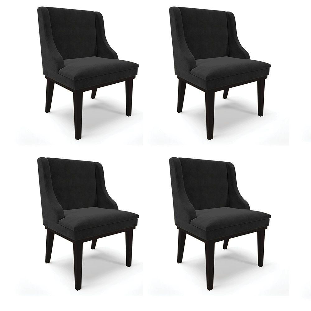 Kit 04 Cadeiras De Jantar Liz Suede Preto Base Fixa Madeira Preto - D'rossi