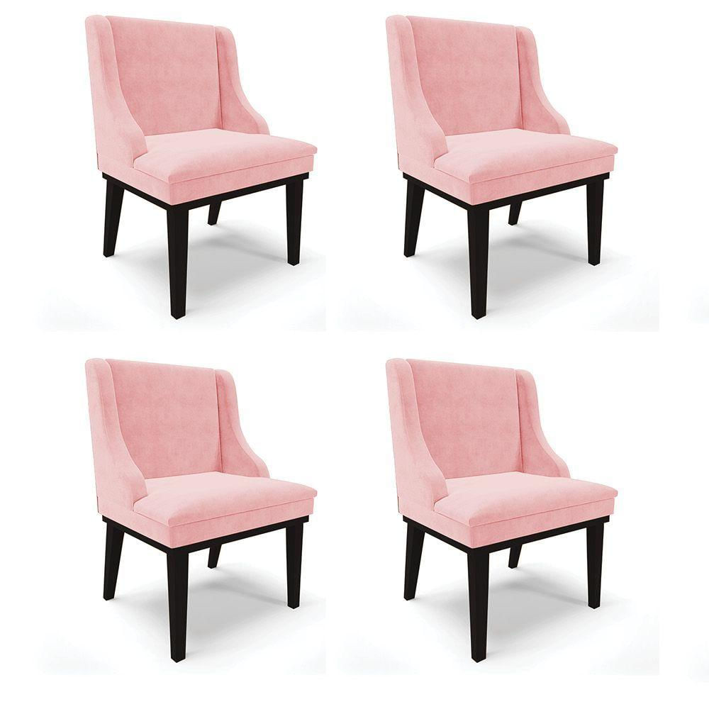 Kit 04 Cadeiras De Jantar Liz Suede Rosa Bebê Base Fixa Madeira Preto - D'rossi