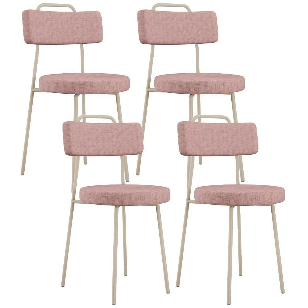 Kit 04 Cadeiras Decorativa Estofada Para Sala De Jantar Barcelona Arena L02 Linho Rosa - Lyam Decor