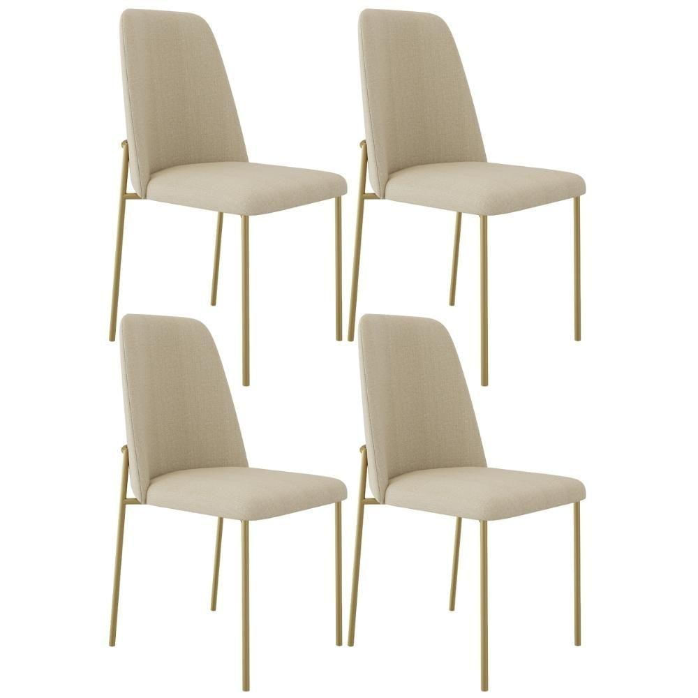 Kit 04 Cadeiras Decorativa Estofada Para Sala De Jantar Dourada Bella L02 Linho Bege Escuro - Lyam Decor