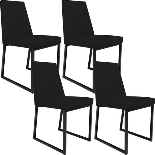 Kit 04 Cadeiras Decorativas Estofada Para Sala de Jantar Dafne L02 Corano Preto - Lyam Decor