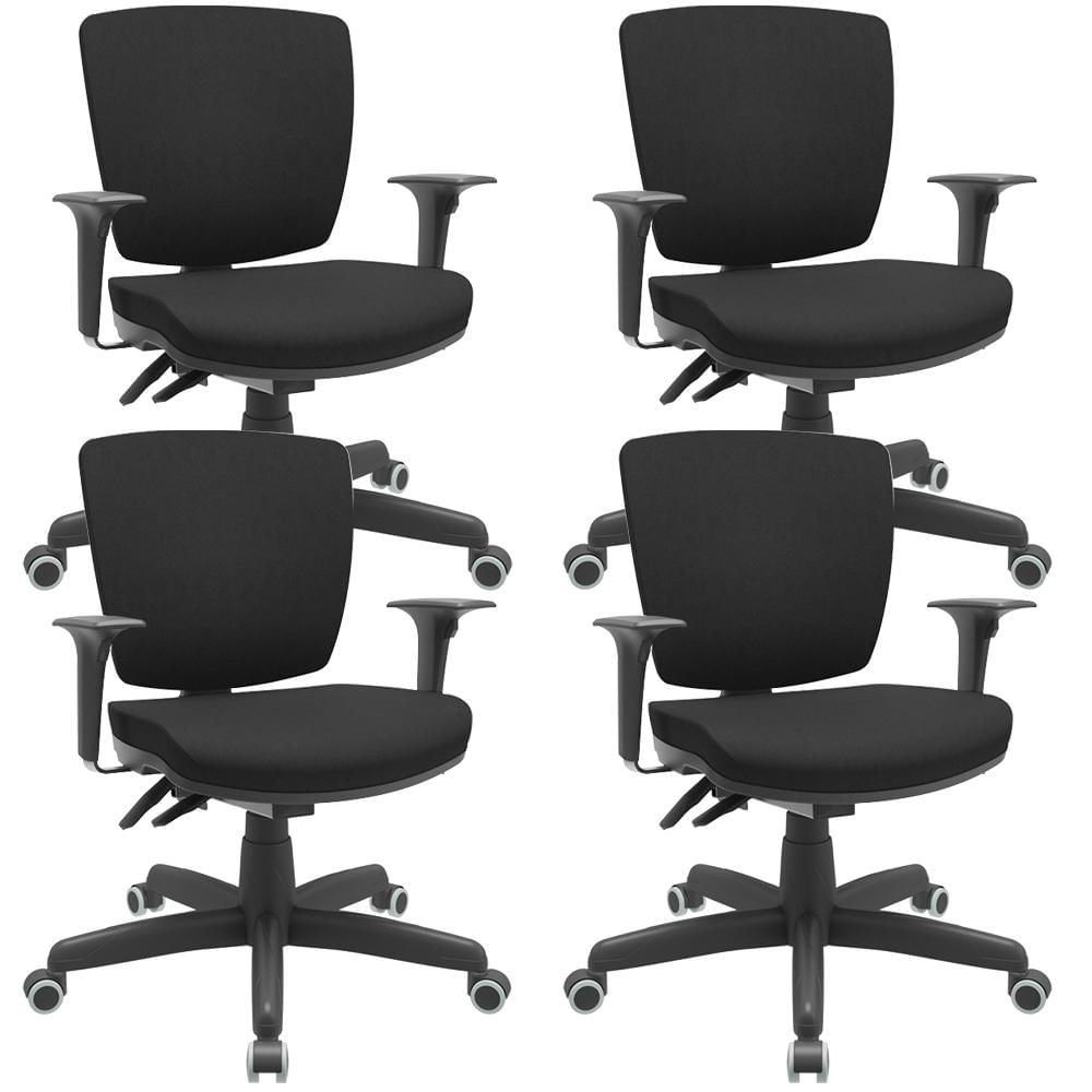 Kit 04 Cadeiras Escritório Executiva Office Giratória Preto Baixa Flexi P03 Poliéster Preto - Lyam