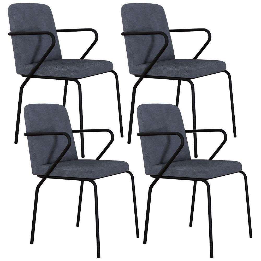 Kit 04 Cadeiras Estofada Para Sala De Jantar Com Braço Loft Preto C01 Bouclê Nuvem - Lyam Decor