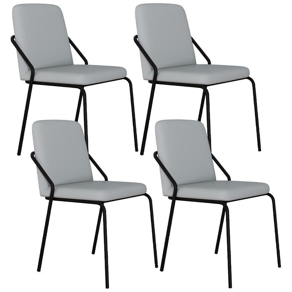 Kit 04 Cadeiras Estofada Para Sala De Jantar Loft Preto C01 Courino Saturno Off White - Lyam Decor