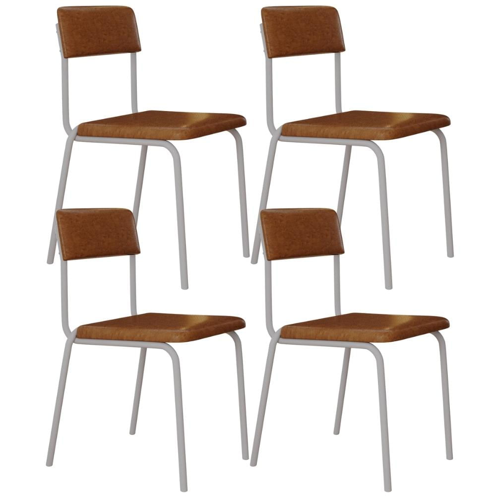 Kit 04 Cadeiras Estofada Para Sala de Jantar Sense Branco C01 Courino Caramelo - Lyam Decor