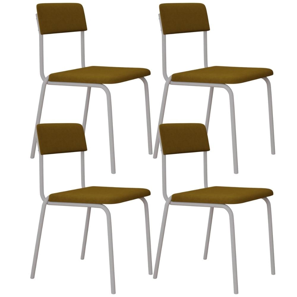 Kit 04 Cadeiras Estofada Para Sala de Jantar Sense Branco C01 Linho Mostarda - Lyam Decor