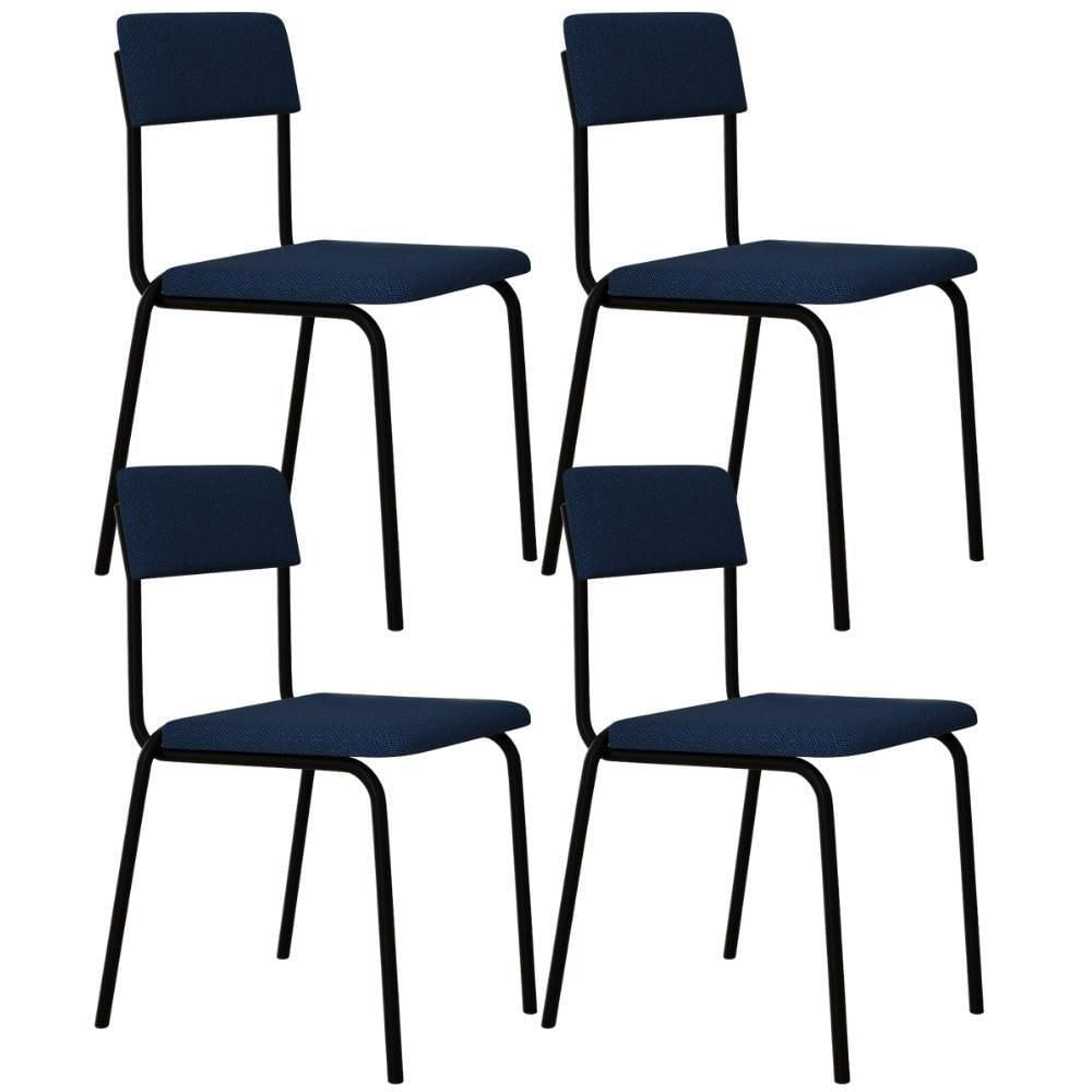 Kit 04 Cadeiras Estofada Para Sala De Jantar Sense Preto C01 Linho Azul - Lyam Decor