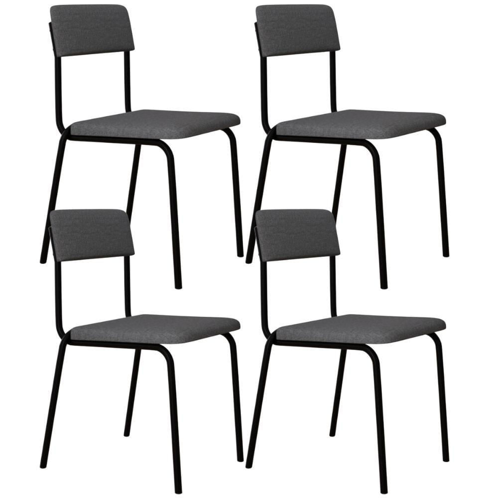 Kit 04 Cadeiras Estofada Para Sala De Jantar Sense Preto C01 Linho Cinza Claro - Lyam Decor