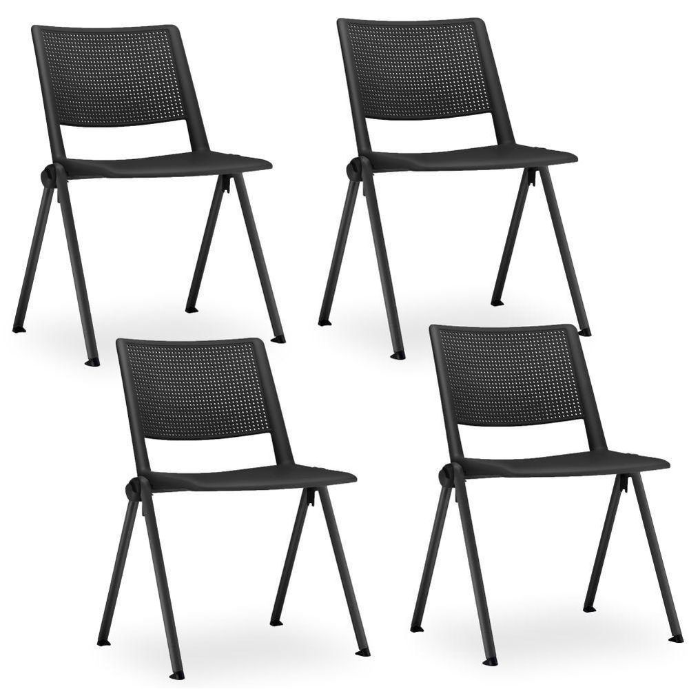 Kit 04 Cadeiras Fixa Base Preta Empilhável Up F02 Preto - Lyam Decor