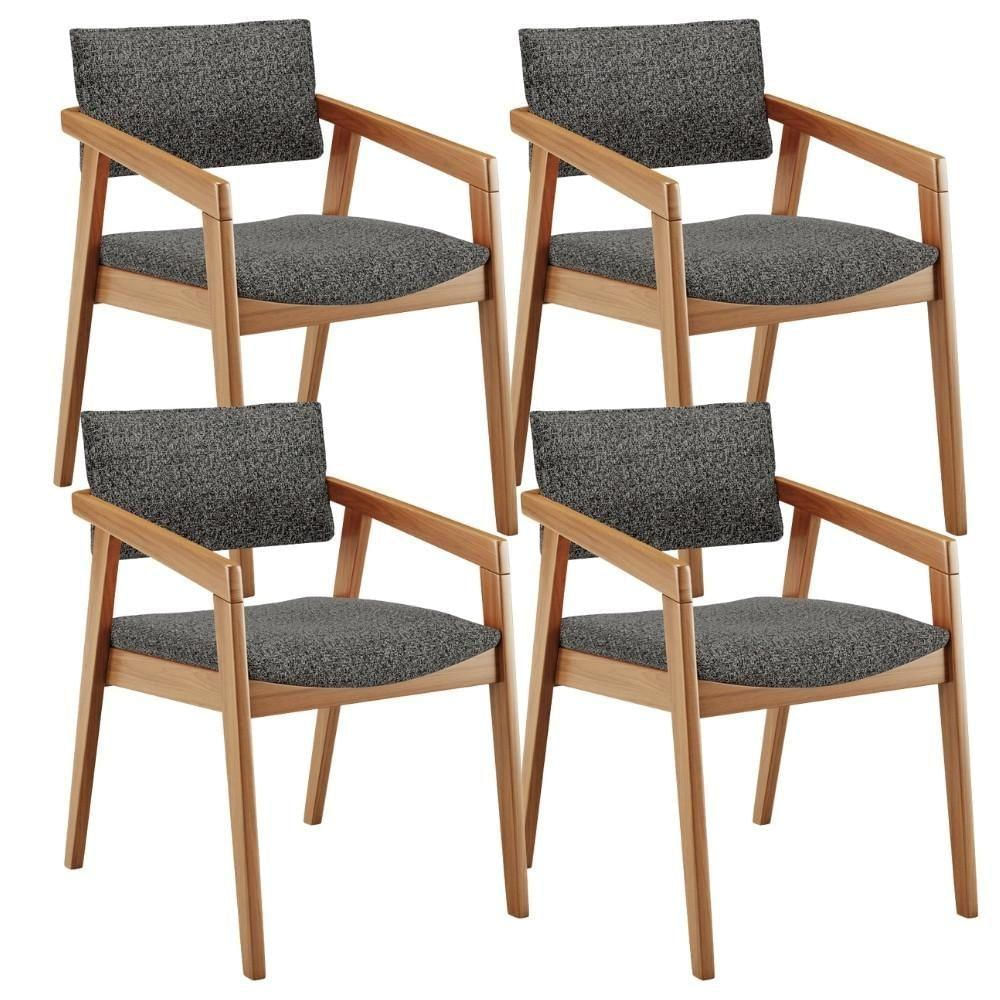 O Kit 04 Cadeiras Para Sala de Jantar Estar Living Giorgia, da Lyam Decor, é perfeito para adicionar um toque moderno à sala de jantar. Com sua estrutura em madeira maciça envernizada, ela traz durabilidade e estilo para o ambiente. O assento e o encosto estofados e revestidos com tecidos alto padrão proporcionam conforto durante as refeições, além de serem fáceis de limpar. Além disso, essa cadeira de madeira conta com um design elegante e contemporâneo, proporcionando destaque pela sua combinação perfeita de funcionalidade e beleza, por isso, seja para pequenas refeições em família ou para receber convidados, essa cadeira de jantar estofada é a escolha ideal. Ah, já a versatilidade fica por conta do fato de conseguir aproveitá-la em diversos ambientes, desde a sala de jantar, sala de estar, escritório e até mesmo recepção. Demais, não é mesmo?! Então, não perca mais tempo, transforme sua sala de jantar em um espaço sofisticado e acolhedor com a Cadeira Giorgia. Adquira a sua agora mesmo e desfrute de momentos memoráveis ao redor da mesa. Dimensões do produto (L x A x P) 56 cm x 80 cm x 65 cm Medidas internas Altura do chão à base: 35,5 cm Altura do chão ao assento: 45 cm Largura do assento: 50 cm Profundidade do assento: 55 cm Altura do encosto: 25 cm Altura total do encosto: 80 cm Largura do encosto: 50 cm Altura do início da braça: 63 cm Peso aproximado: 8 kg Características: Estrutura em madeira de reflorestamento de eucalipto tratado. Revestimento em Linho na cor Mescla Chumbo. Assento e encosto com espuma D-28. Peso máximo suportado por cadeira até 130 kg. Estrutura de Madeira na cor Nozes. Produto entregue montado. - Por se tratar de estofado as medidas podem ter uma pequena variação de até 3 cm.