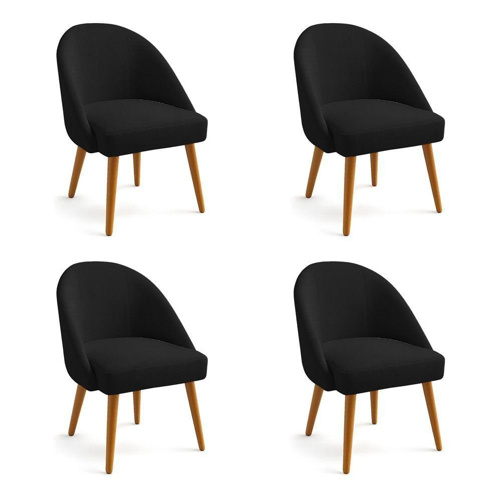 Kit 04 Cadeiras Poltrona De Jantar Estofada Luna Boucle Pés Palito Castanho - Pallazio Cor Preto