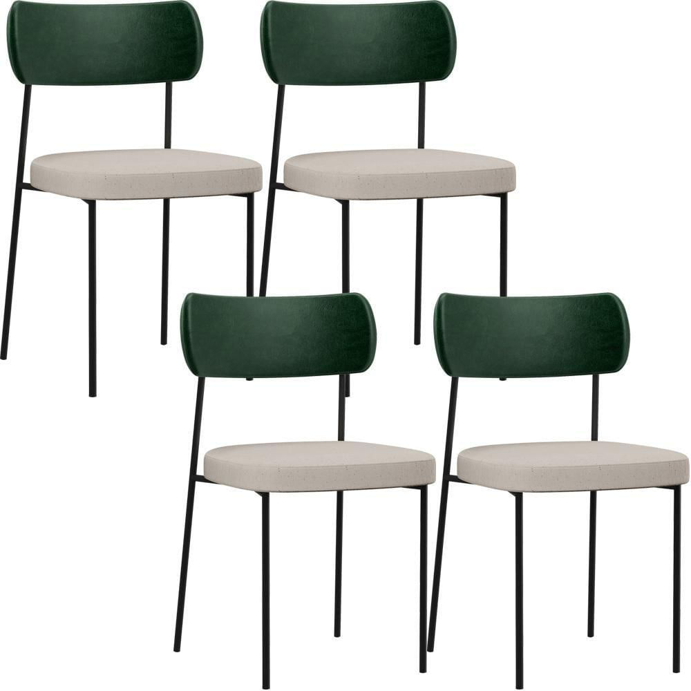 Kit 04 Cadeiras Para Sala De Jantar Melina L02 Facto Verde Musgo Linho Cru - Lyam Decor Caso você esteja buscando conforto, realce e praticidade, o Kit 04 Cadeiras Decorativas Estofada Para Sala De Jantar Melina L02 Facto Verde Musgo Linho Cru - Lyam Decor vai superar todas as suas expectativas. Garante muita comodidade e otimiza o espaço, além de harmonizar com seu estilo decorativo facilmente, podendo ser utilizada em salas de estar, jantar e cozinha, além de dar um toque especial em sua decoração. Sua proposta de design suavizará seu ambiente sem passar despercebida oferecendo mais leveza e receptividade ao seu lar. Estruturada em aço carbono, contrasta lindamente com o encosto e assento estofados que são extremamente confortáveis, resistentes e aconchegantes. Você merece esta incrível combinação em sua casa, adquira já a sua!Dimensões da Cadeira (L x A x P) 47 x 79 x 52,5 cmMedidas Internas: Altura do encosto: 33 cm Largura do encosto: 48,5 cm Altura do assento: 6 cm Largura do assento: 44 cm Profundidade do assento: 45 cm Altura do Assento ao chão: 48 cmCaracterísticas: Encosto e assento estofados com espuma laminada. Estrutura fixa em aço carbono com pintura epóxi na cor preto. Revestimento em Facto Verde Musgo e Linho Cru. Peso suportado: Até 120 kg.- Por se tratar de estofado as medidas podem ter uma pequena variação de até 3 cm. - A tonalidade do produto real poderá ter ligeira variação devido o lote de tecidos. - A limpeza deve ser feita com pano levemente umedecido em água limpa, sem esfregar, não utilizar produtos abrasivos, desengordurantes, álcool ou solvente.Observações importantes: - Produto para residencial em ambiente interno, não devendo ficar exposto diretamente ao sol, calor e umidade excessivos. - Pode haver alguma diferença de tonalidade entre a imagem e o produto real, por conta do tratamento de imagens e a calibração de cores do seu monitor. - As imagens são meramente ilustrativas, não acompanham objetos de decoração e eletrônicos. -, caso haja alguma não assine o comprovante de recebimento. - Montagem, desmontagem e outras instalações serão de responsabilidade do cliente. . - C NA