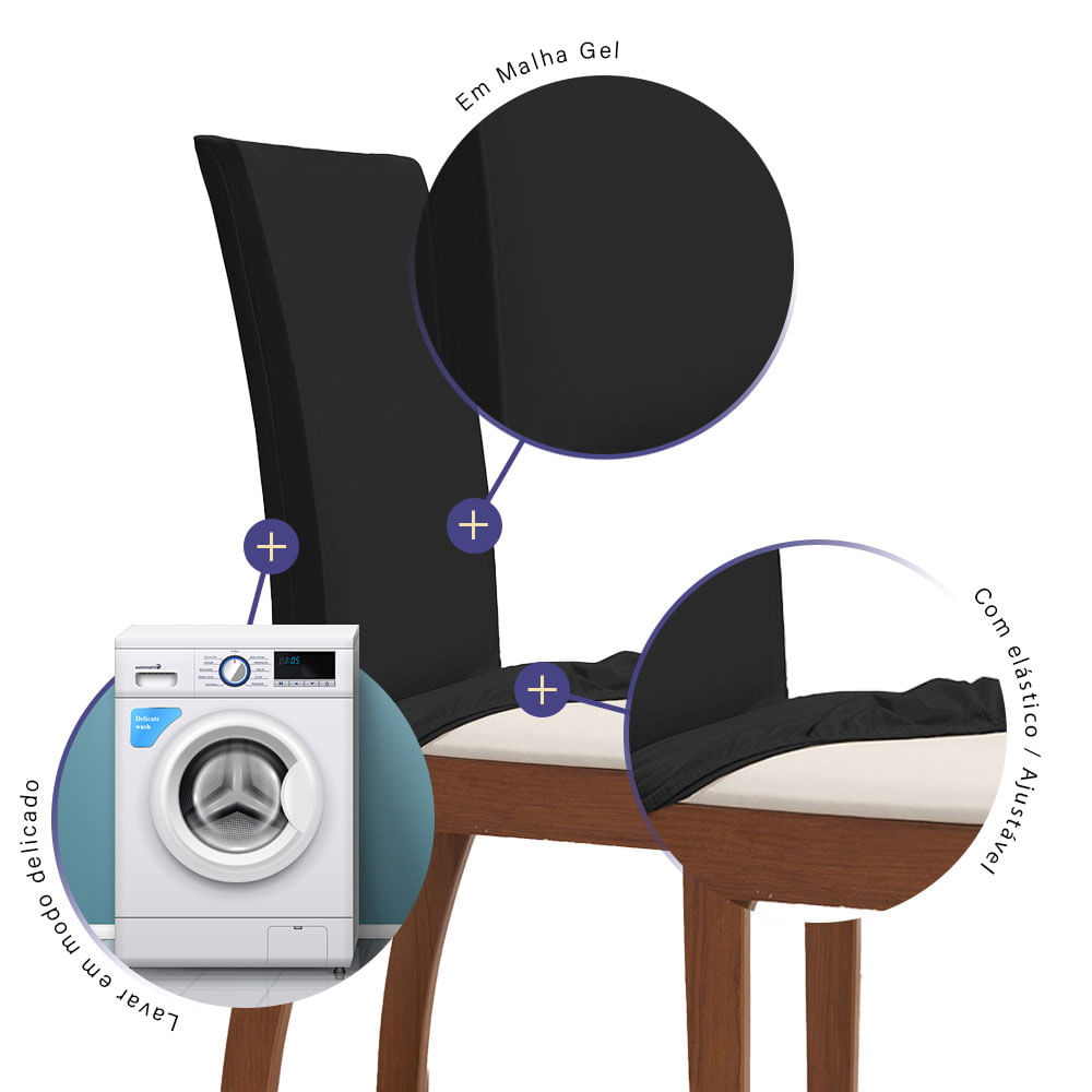 Kit 04 Capas Para Cadeiras MR 4 Lugares Malha Gel 100% Poliéster - Preto