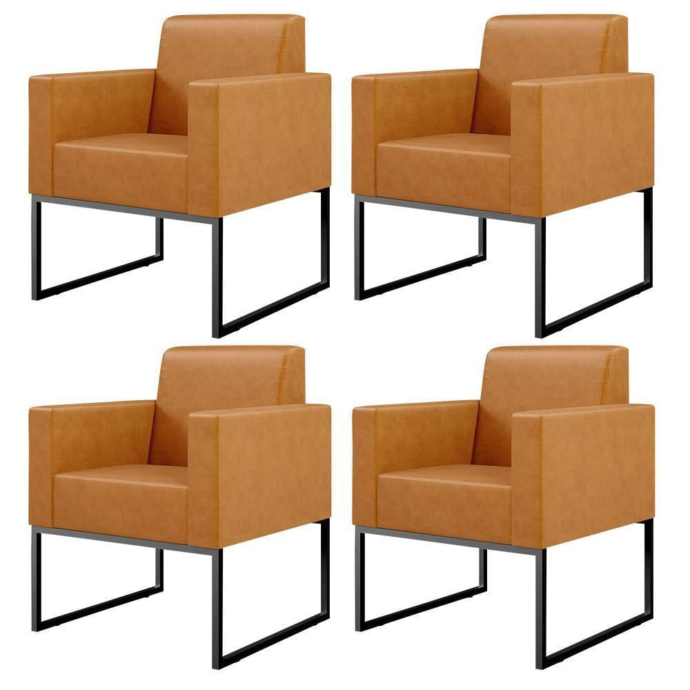 Kit 04 Poltronas Decorativas Sala Base Fixa Metal Helô L02 Couríssimo Whisky - Lyam Decor