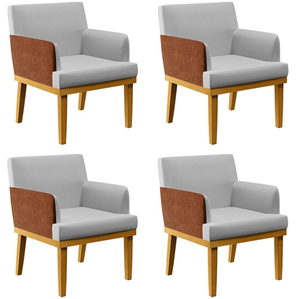 Kit 04 Poltronas Decorativas Para Sala Estar Beatriz W01 Linho Cinza Couríssimo Camel - Lyam Decor