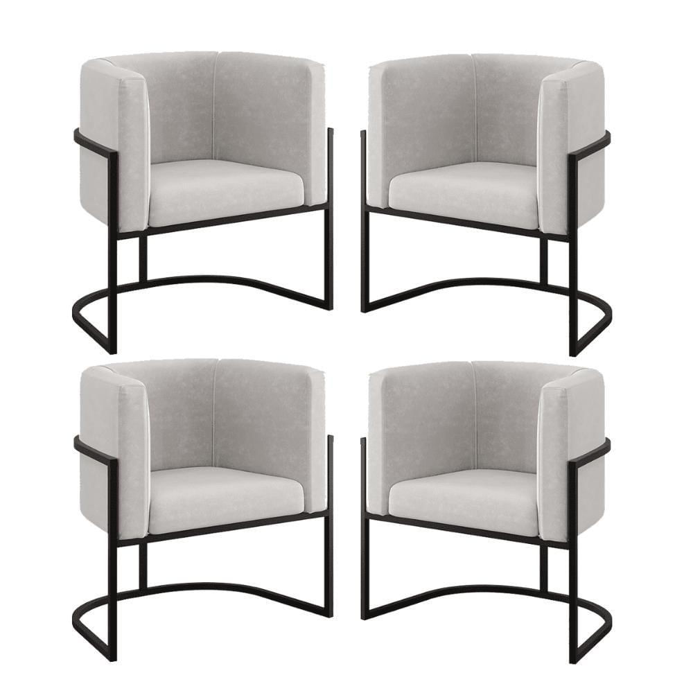 Kit 04 Poltronas Lua Sala Decorativa Base De Ferro Black Bege