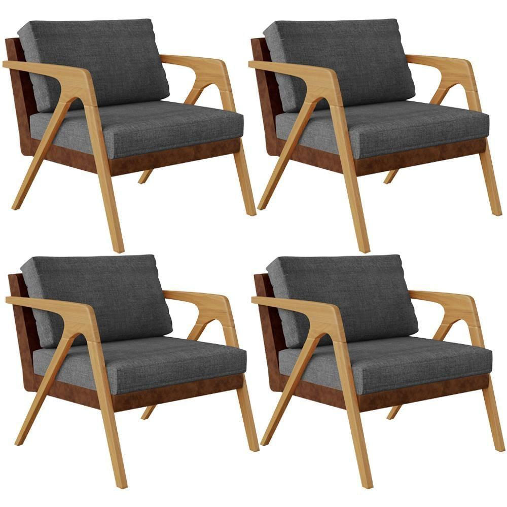 Kit 04 Poltronas Decorativas Pietra L02 Couríssimo Marrom Linho Cinza Escuro - Lyam Decor