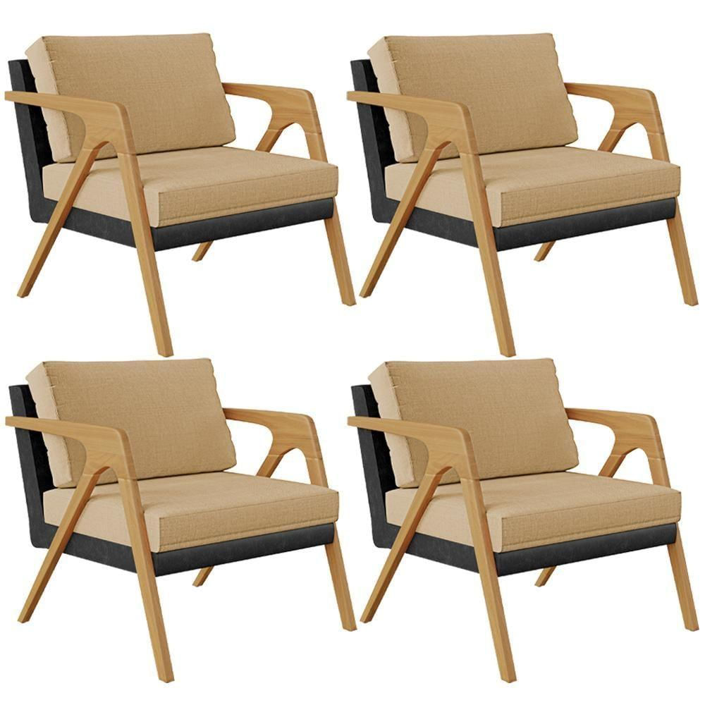 Kit 04 Poltronas Decorativas Sala Estar Pietra L02 Couríssimo Preto Linho Bege Escuro - Lyam Decor