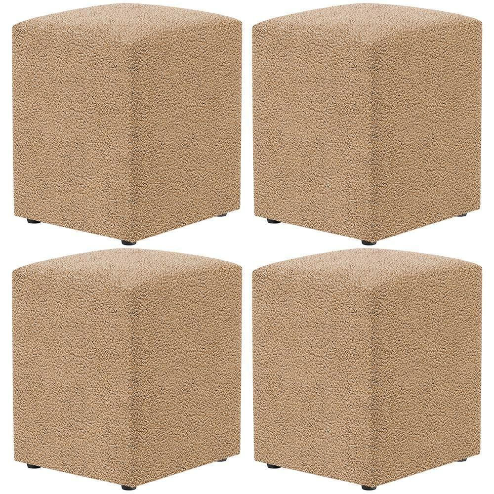 Kit 04 Puffs Quadrado Decorativo Sala De Estar L02 Bouclê Mostarda - Lyam Decor