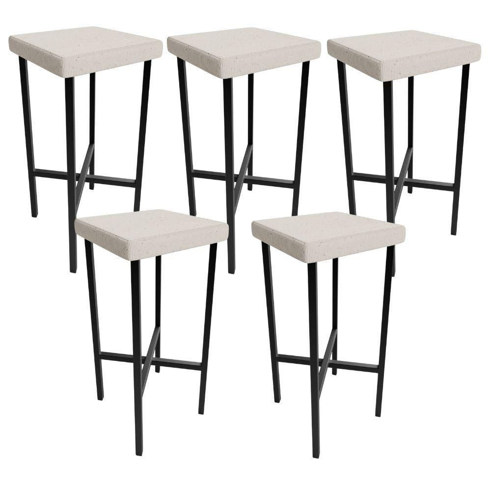 Kit 05 Banquetas Alta Bar Cozinha Sala De Jantar Preto Stella L02 Linho Cru - Lyam Decor