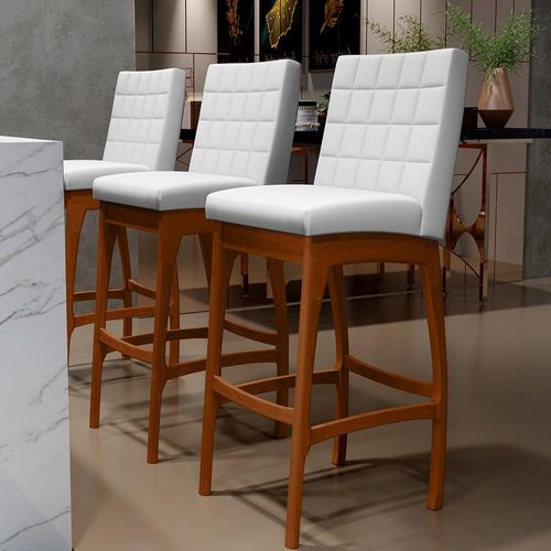 Kit 05 Banquetas Altas Para Cozinha Sala de Jantar Fixa Mila B04 Facto Branco Fosco - Lyam Decor