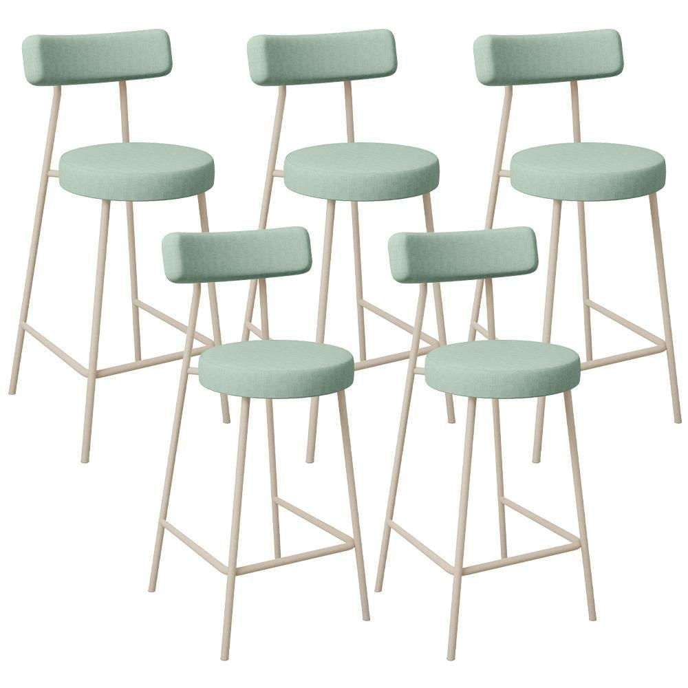 Kit 05 Banquetas Baixa Bar Cozinha Sala De Jantar Aço Milão Arena L02 Linho Verde Menta - Lyam Decor