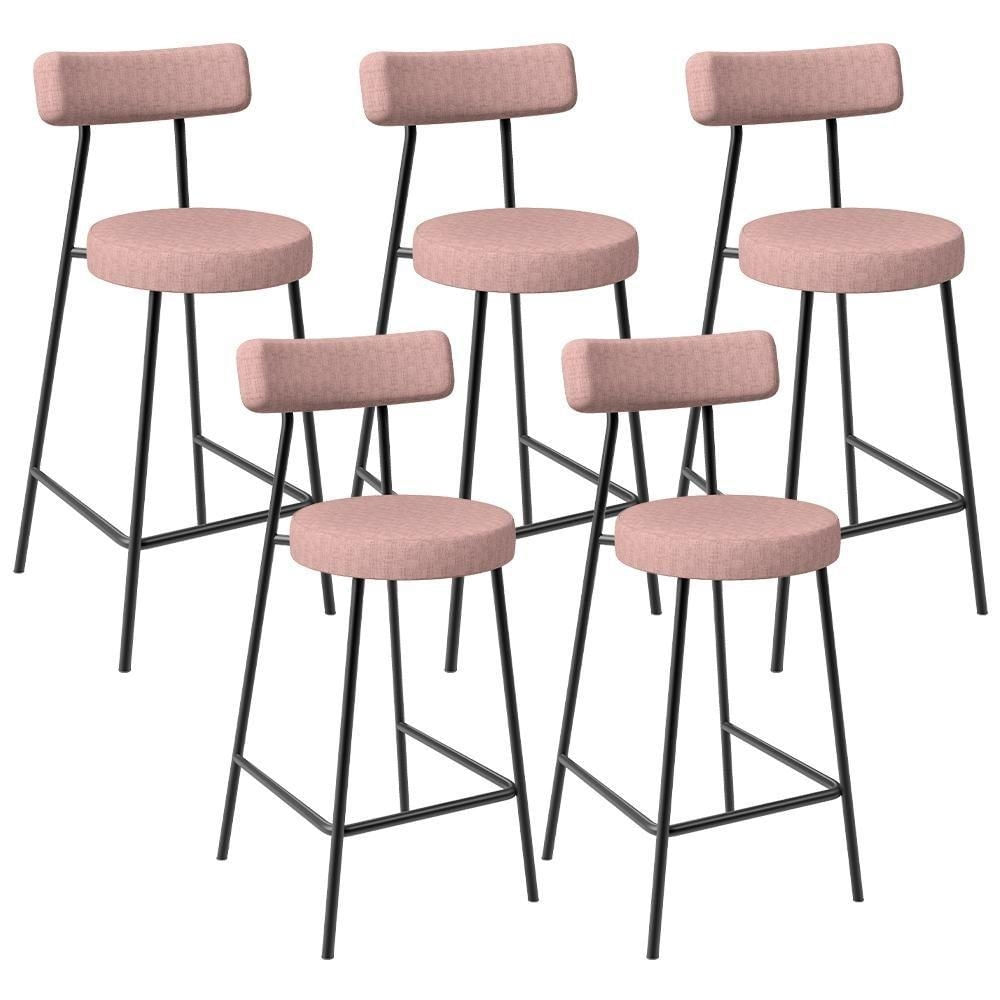 Kit 05 Banquetas Baixa Bar Cozinha Sala De Jantar Aço Milão L02 Linho Rosa - Lyam Decor