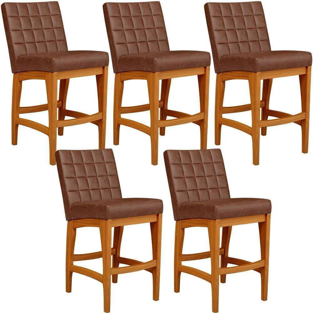 Kit 05 Banquetas Baixa Cozinha Bancada Bar Sala Jantar Fixa Mila L02 Couríssimo Marrom - Lyam Decor